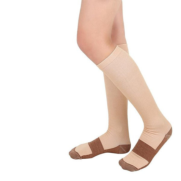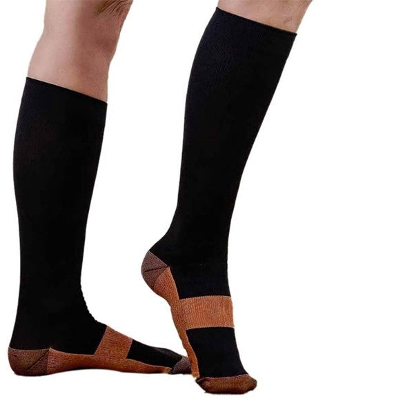 Are you one of the many people who suffer from symptoms of varicose veins or simply the daily discomfort of poor circulation? Perhaps you are a medical professional or otherwise find yourself on your feet all day at work, and notice that your legs, feet, and ankles hurt most of the day due to such strenuous but necessary activity. Whatever the cause, pain, and discomfort in the legs can prohibit the ambulatory movement necessary to complete daily tasks at work or at home. With the right pair of compression socks, women and men alike can experience relief from discomfort in the legs. The New Miracle Copper Knitted Compression Socks can provide a solution to these issues in a comfortable and eco-friendly way.
