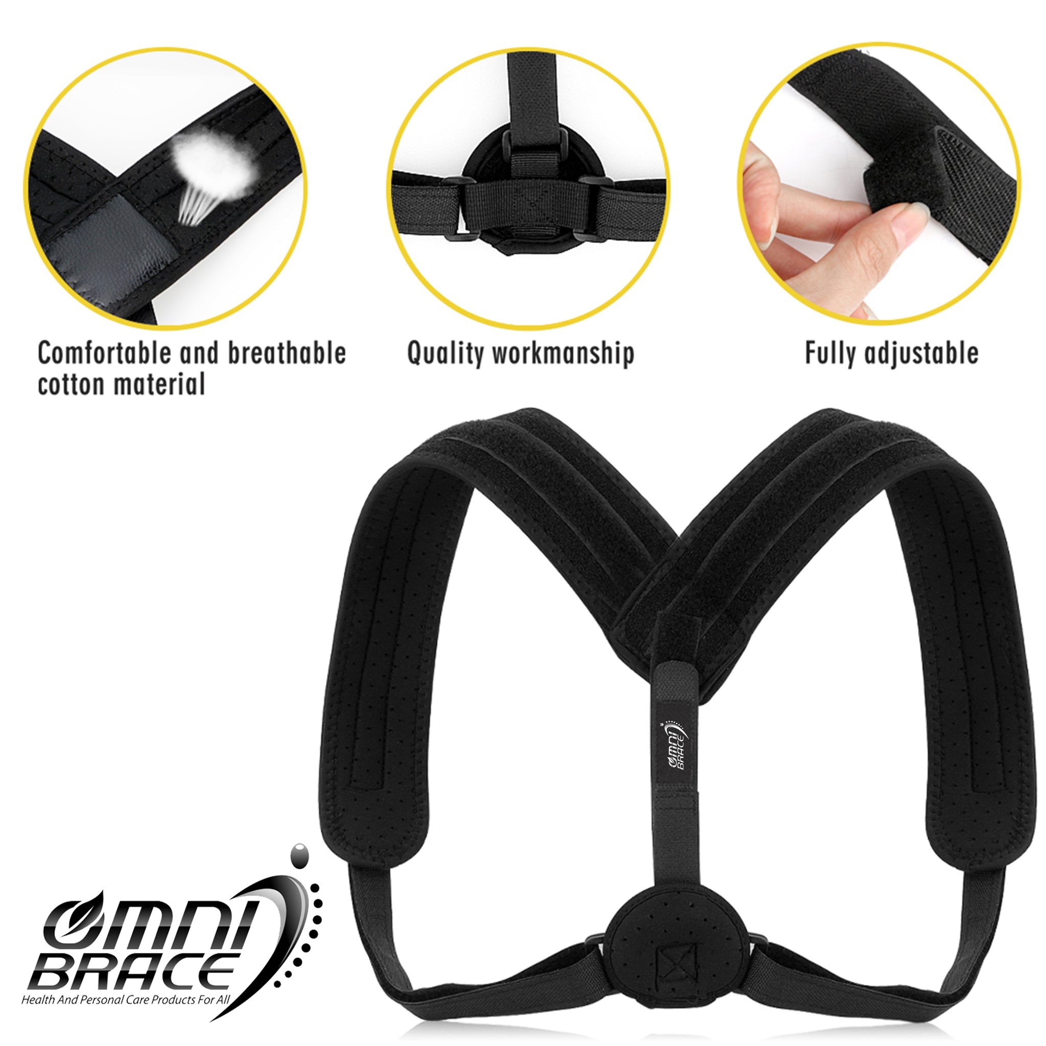 OmniBrace Adjustable Posture Corrector Clavicle Brace is designed to ensure proper spine alignment and stability. Made from a soft and breathable material, this brace can be worn on top or underneath your clothes. After wearing the brace for a period of time your back will develop muscle memory. Which in turn will help you keep and hold proper posture even without the device!